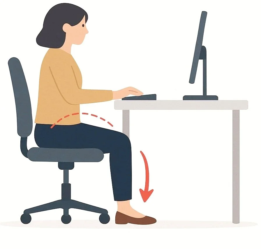 The Fix: Provide adjustable ergonomic chairs that support the spine’s natural curve. Employees should be able to adjust seat height so their feet rest flat on the floor, knees are at a 90-degree angle, and hips are slightly above knee level. Footrests can help shorter individuals maintain proper posture.
