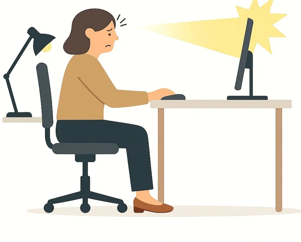 The Mistake: Poor lighting and glare from windows or overhead lights can lead to eye strain, headaches, and reduced focus.