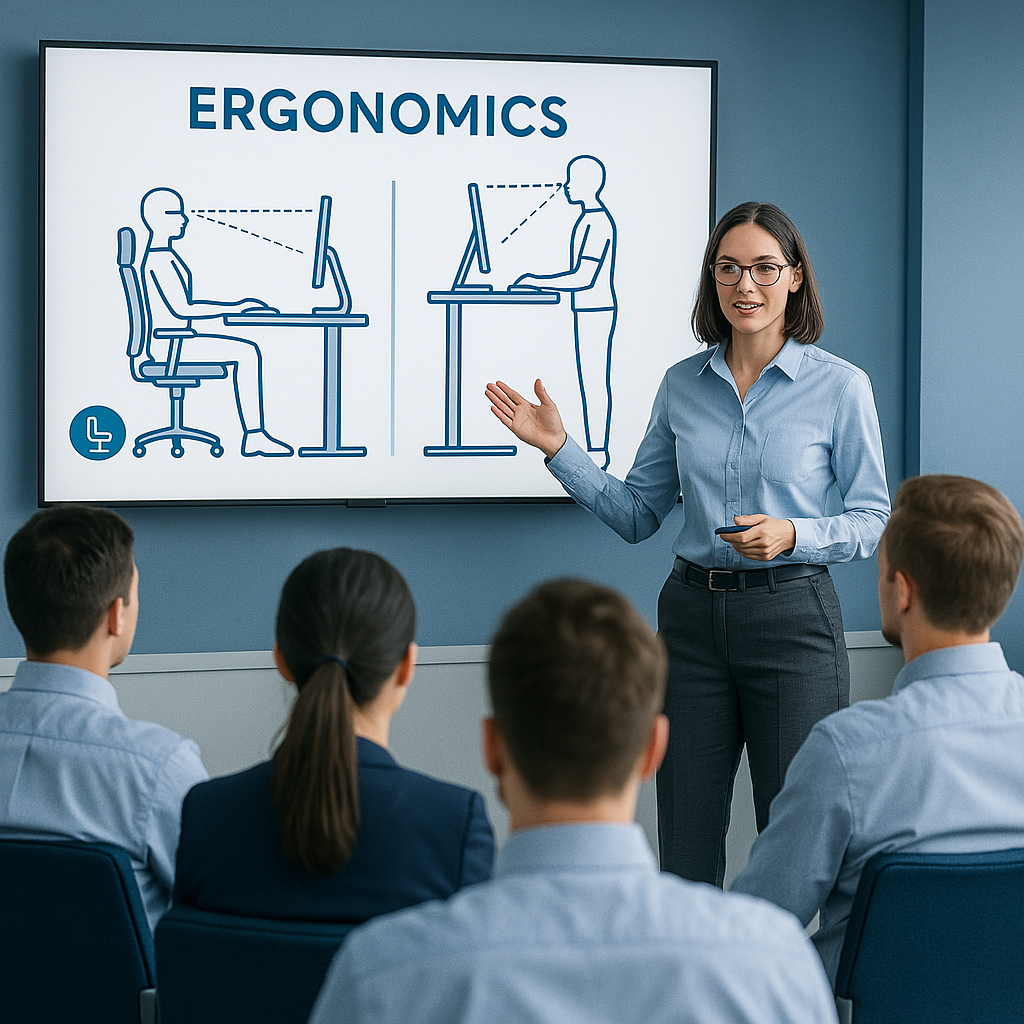 We offer engaging 60-minute seminars and full-day training sessions on office and industrial ergonomics, posture, and injury prevention.
